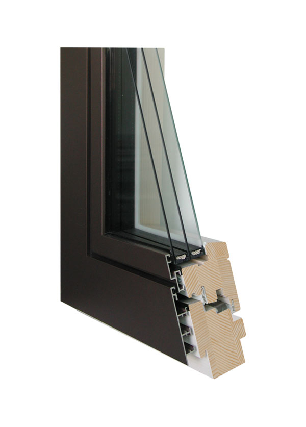 - Aluminijasta obloga je na leseni okvir pritrjena s sponkami iz umetne mase, ki preprečujejo direktni stik aluminija in lesa in omogoča kroženje zraka in odvod vlage v vmesnem prostoru