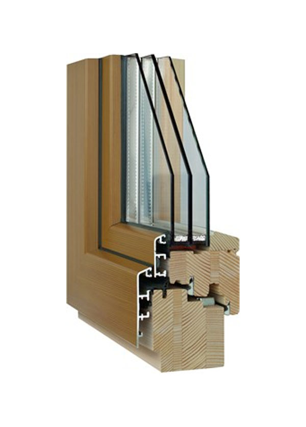 - Aluminijasta obloga je na leseni okvir pritrjena s sponkami iz umetne mase, ki preprečujejo direktni stik aluminija in lesa in omogoča kroženje zraka in odvod vlage v vmesnem prostoru